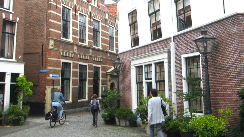 Hoe ik precies over het hoofd heb gezien dat ik op dag één in een ánder gebouw college had dan in het hoofdgebouw? Geen idee. Ik herinner me wel hoe mooi ik de miniatuurgrachten vond (vergeleken bij Amsterdam was alles ‘klein’) en hoe leuk het was om al meanderend door die nieuwe stad te dwalen en af en toe stil te staan bij een mooie gevelsteen, een indrukwekkende boom of een bijzonder hofje. Mijn zucht naar verwondering zal ongetwijfeld niet de beste match zijn geweest met de systematiek van mijn nieuwe rooster; laat ik het daar maar op houden.