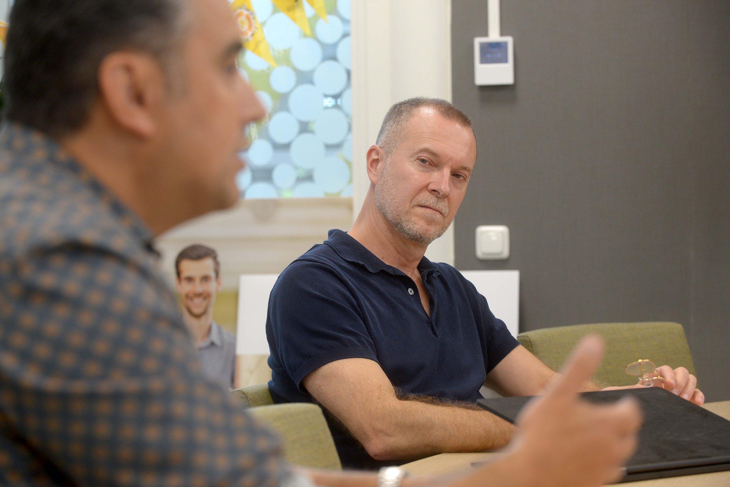 Hasib: ‘We proberen meer geld binnen te halen, we kijken naar de kosten – en daarnaast kijken we hoe we ons werk efficiënter kunnen organiseren. Dat is de boodschap die we ook in Almere uitdragen: denk goed na hoe je je werkzaamheden kunt verlichten. Want je moét het met minder collega’s doen.’ Erika: ‘En als je met bezieling je werk doet, is het heel moeilijk om die keuzes te maken, Dan ga je maar door. Daar moet het leiderschap in deze organisatie goed op letten: dat mensen die keuzes máken, hoe moeilijk dat ook is.’ Twan: ‘De bezieling is enorm hoog hier op Windesheim. Dat is echt uniek. Tegelijkertijd is het daardoor voor veel collega’s lastig om een grens te trekken van “tot hier ga ik en verder niet”