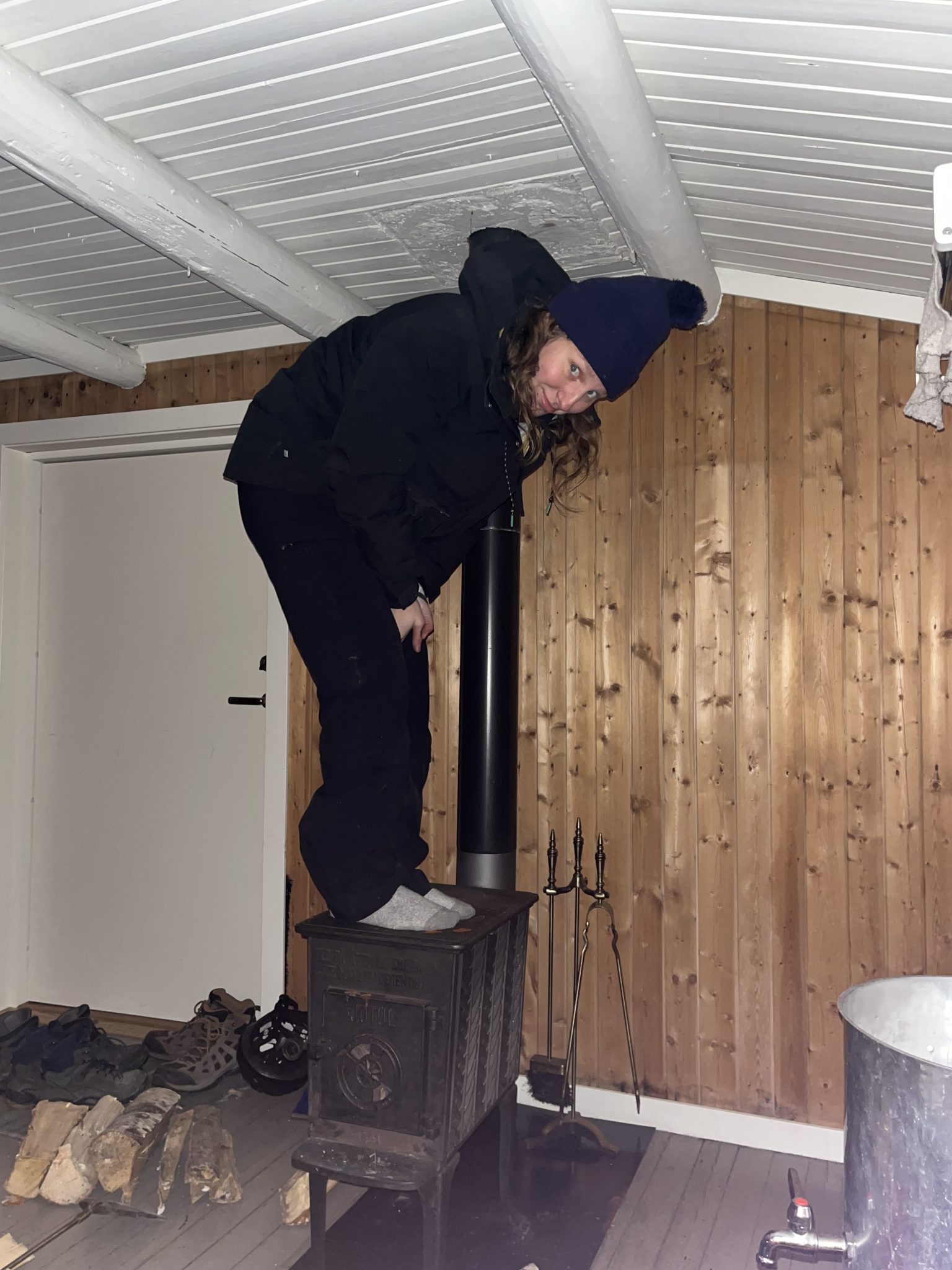 But once we were back, our feet felt like ice blocks and I was the only one of us with any experience for making a fire in a stove. And after that was done (let’s not talk about that it took me an hour), I had the huge need to defrost my feet as you can see here.