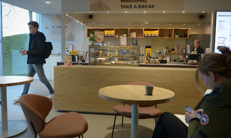 Niet alleen de prijs, ook de smaak van de koffie is anders. Bij Appèl is sojamelk de standaard. Onze standaard is soja, en koemelk koop je bij,” legt Vonk uit. “Die keuze is bewust gemaakt vanuit duurzaamheid. De CO₂ impact van koemelk is hoger.” Wie koemelk (of een andere plantaardige melksoort) wil, betaalt daarvoor €0,15 extra. Volgens Appèl sluit die keuze aan bij de duurzaamheidsdoelstellingen van hogescholen, die inzetten op het terugdringen van de CO₂-uitstoot.
